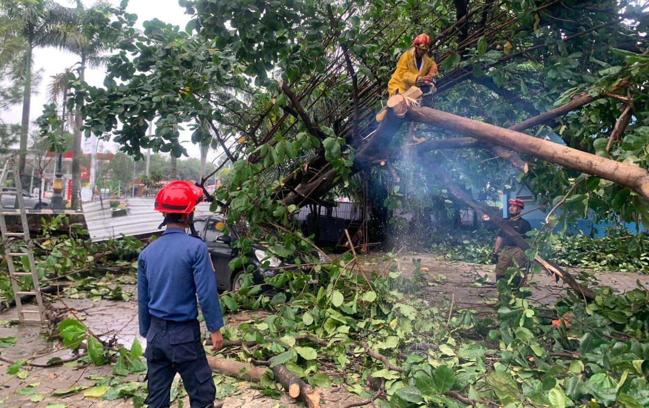 “Awalnya hujan biasa, lalu anginnya tiba-tiba sangat kencang. Di Laga Tangkas ada bagian yang terlepas, dan beberapa pohon juga tumbang,” ujarnya.