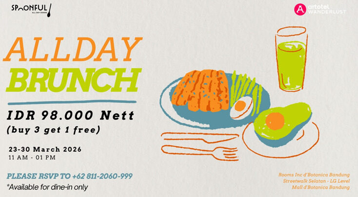 Program All Day Brunch ini berlangsung mulai 23 hingga 30 Maret 2026. Setiap hari pukul 11.00 hingga 13.00 WIB, dan tersedia khusus untuk dine-in di Spoonful All Day Dining.